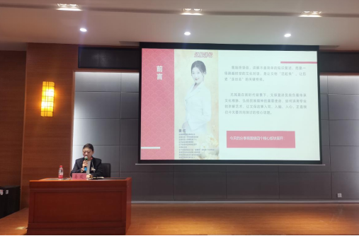 图1 沈阳市博物馆社教部主任姜欢在讲座现场做讲座